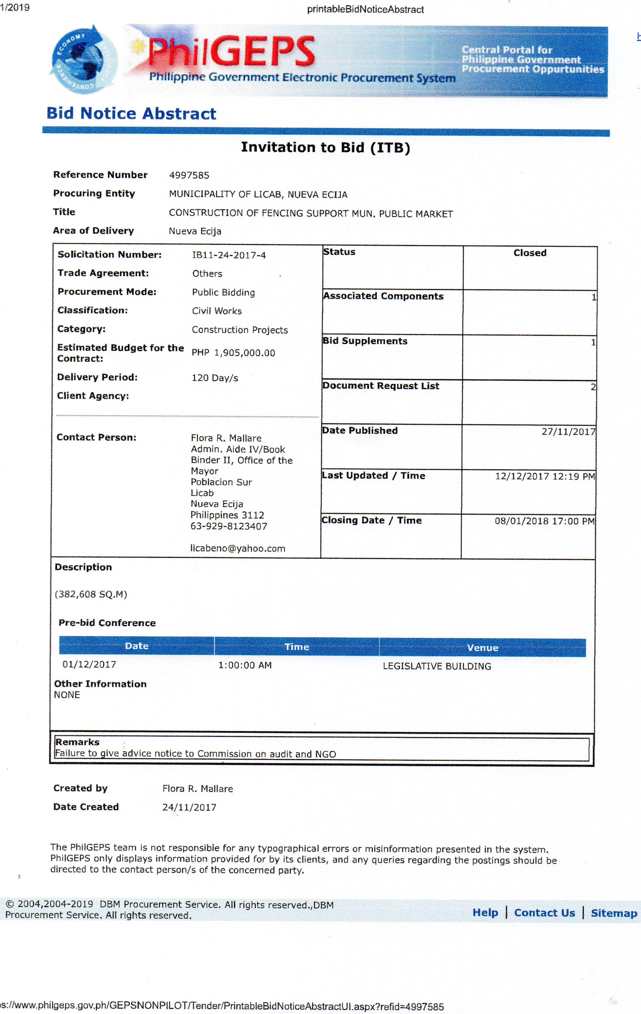 construction of fencing support mun. public market